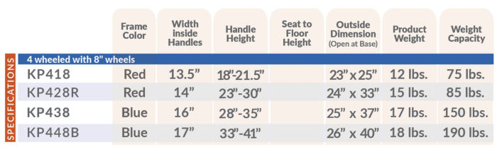 - Large 8” front swivel wheels for easier maneuverability over uneven surfaces and obstacles.