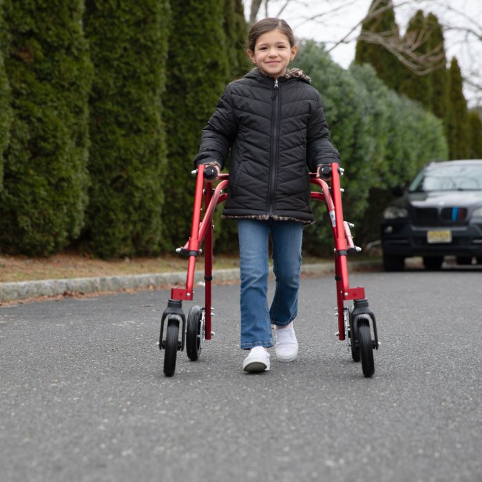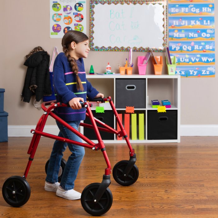The 4-Wheeled Klip with 8” swivel wheels model is easy to navigate on all indoor and outdoor surfaces. It is excellent for an active lifestyle. It is available in four sizes to accommodate toddlers, children, teens and adults and is recommended for those with Cerebral Palsy and other neurological conditions.