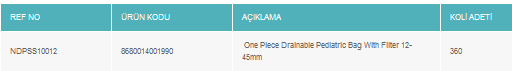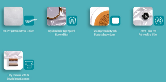 It is designed for children and babies. Comfortable Use with Non-Perspiration Exterior Surface. With Specially Designed 5 Layered Film, Liquid and Odur Tight. Easy Drainable with its Default Touch Fasteners. Stoma Observation with Transparent View. Easy Trackable with the Dates and Product Code on the Bag. Carbon Odour Filter.