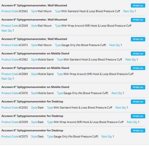 These can be supplied with a standard hook & loop blood pressure cuff, wrap round (WR) hook & loop blood pressure cuff or the gauge only without a blood pressure cuff.