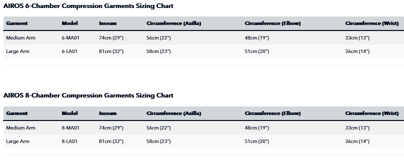 Airos - 6-Chamber & 8-Chamber Upper Extremity Compression Garments