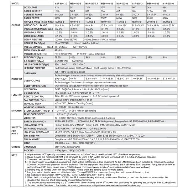 - MW - Model MSP-600 Series - 600W Single ...