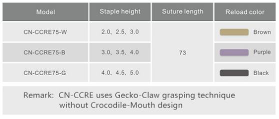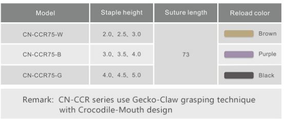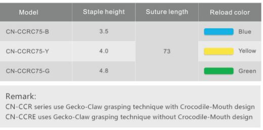 Channel - Model CN-CCR, CN-CCRE, CN-CCRC -75 mm Reload Disposable Endoscope Linear Cutting Staplers and Components