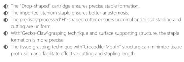 75 mm Reload Disposable Endoscope Linear Cutting Staplers and Components Indicated for resection, transection and anastomosis of lung and bronchial tissues, stomach and intestine in open or endoscopic surgery.