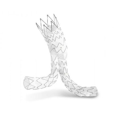 The main body has a laser-cut stent proximally with active fixation as well as a specially developed sealing stent. The asymmetric spring configuration in combination with an soft and flexible polyester give the stent graft flexibility and adaptability. Radiopaque markers at various positions of the stent graft facilitate accurate positioning but also cannulation of the short leg of the main body.