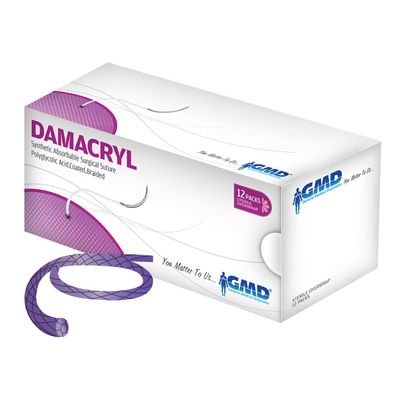 - DAMACRYL is absorbable multifilament sterilized suture absorbed in-vivo by simple hydrolytic mechanism.