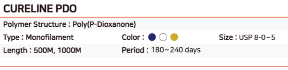 ㆍCURELINE-D is a synthetic absorbable surgical monofilament made of polydioxanone (PDO).