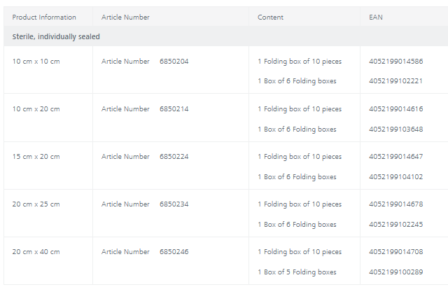 Very high absorption capacity thanks to its highly absorbent core. The side facing away from the wound offers an optimal clothing and bedding protection. Can be used under compression bandages. RespoSorb Super is a sterile superabsorbent dressing used on superficial, moderately to severely exuding wounds. The absorbent core absorbs and binds exudate.