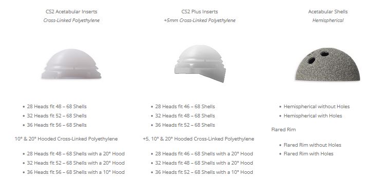 The CS2 Acetabular Cup System has evolved from the clinically proven ConsensusĀ® Hip System. The roughened titanium porous coating is manufactured from sintered irregular beads to enhance initial stability as well as long-term biological fixation. The optional flared rim design improves the press-fit in the highest quality bone. Instruments include both straight and offset reamers and shell impactor. Neutral, hooded, and lateralized cross-linked polyethylene liners are available for up to 36mm heads.