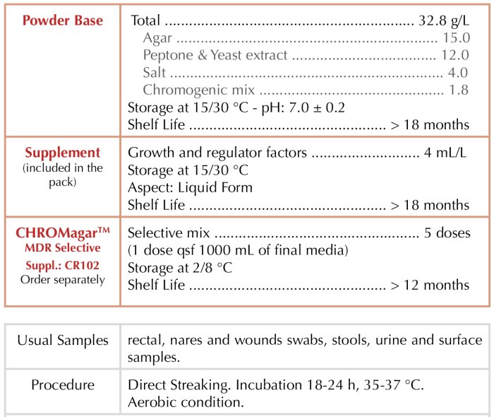 - Screening of MDR Acinetobacter : This medium can be supplemented to enhance MDR specificity allowing the growth of carbapenem-resistant strains.