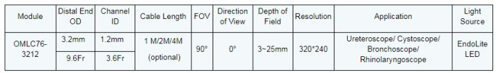 OD: 3.2 mm, ID: 1.2 mm. OPCOM CCU board. Resolution: 320 x 240 pixel