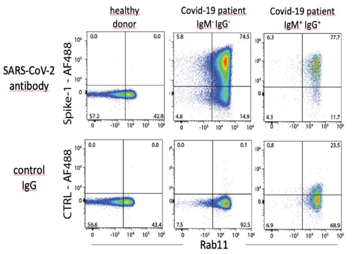 By means of flow cytometry analysis of SARS-CoV-2 carrying exosomes, we will apply antibodies, to identify the origin e.g. which cells and organs released these exosomes (see Figure below).