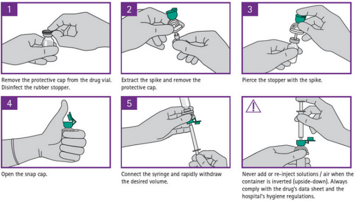 - Withdrawal and injection spike for multidose vials