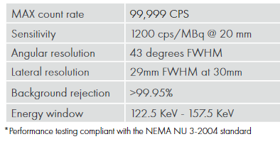 Designed for radio-guided surgical procedures, the sterile, disposable SENSEI® probe quickly expands the field of view and enables the localization of radioactive hotpots in multiple locations.