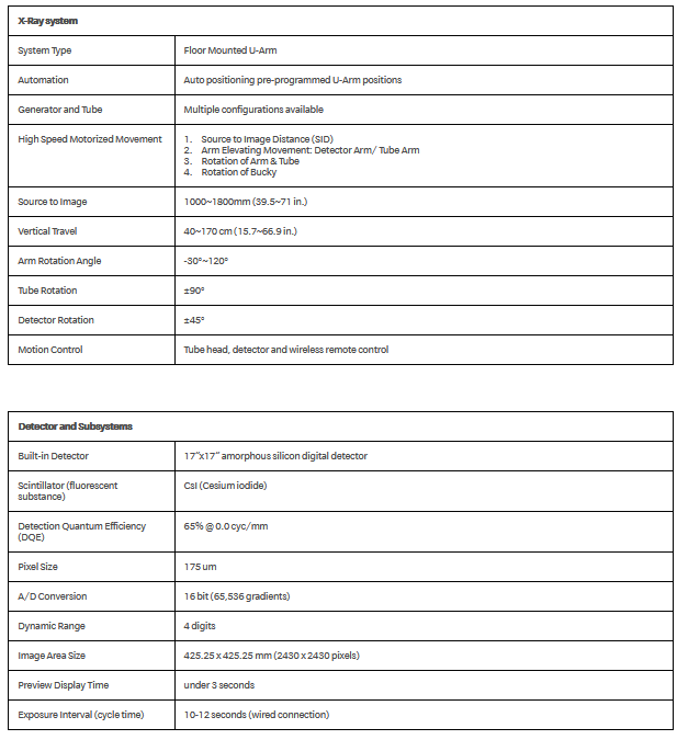 Precise controlKDR® Advanced U-Arm can move from PA to Lateral positions without moving the patient and Independent SID control on the tube and the detector to support all other imaging views commonly required in radiology, including wheelchair and table work.
