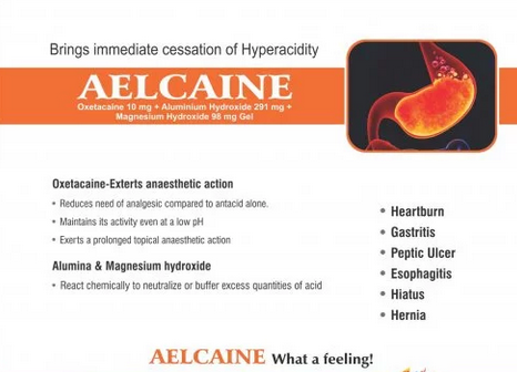 Oxetacaine 10 mg. + dried aluminium hydroxide gel 380 mg. + magnesium hydroxide 98 mg. Pack 200 ml.