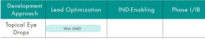 RGNXXXX is a potent, topical eye drop for the treatment of wet AMD. The anti-neovascular effects reduces leaky blood vessels in the eyes.