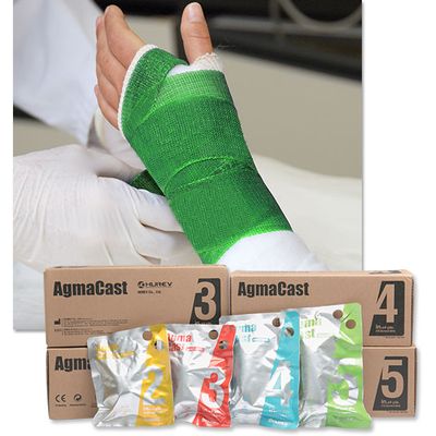 Advantages: X-Ray Translucent: It is highly X-Ray translucent. Light Weight: It is 5 times lighter and stronger than plaster cast. Air Penetration: It can penetrate air through the porous surface, so it help not to feel of itching on the region. Easy To Mold: It is easy to mold on the region due to its softness and elasticity. Excellent Conformability : AgmaCast features multi-directional extensibility to conform well to contours, improving cast fit and appearance. Application: Apply stockinette and undercast patting. Wear gloves to prevent resin adbering to the skin. Dip the product in water for 3 or 5 seconds and squeeze water from the product. Overlap the product on the site with an half or two third of its width as the spiral shape. Overlap 2-3 or 3-5 layers on the site. Molding time is required about 3-5 minutes and weight bearing 20 minutes.