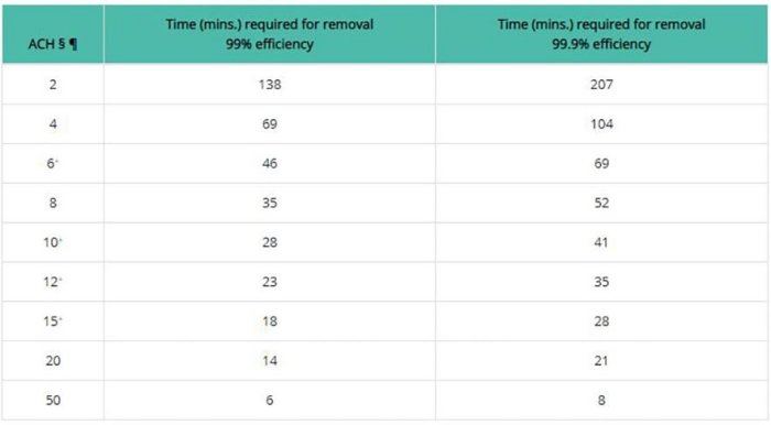 According to the CDC infection control guidelines, a room with 6 ACH needs 69 minutes downtime to remove 99.9% of airborne contaminant. The higher the ACH, the shorter the downtime. This is where the BenchVent air changer unit can help. A single BV295D machine delivers approximately 12 ACH, thus reducing the down time to just 35 minutes base on CDC table. Two units will further reduce the down time to just 20 minutes.