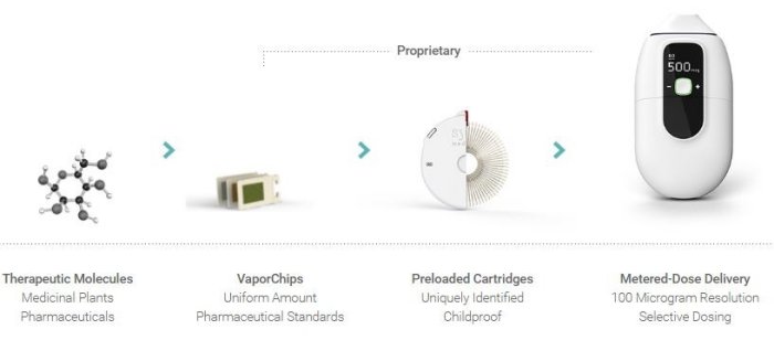 - Delivers a metered dose of THC on the microgram level from medical cannabis inflorescence