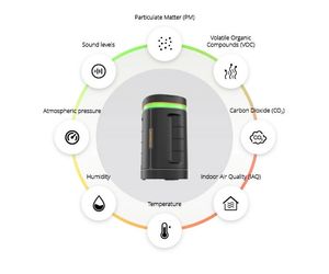 Continuously measures pollutants and climate factors, giving you instant insight into your air quality. - Comprehensive fine particle and VOC monitoring