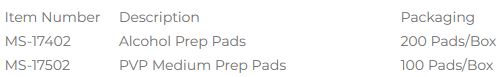 Alcohol Prep Pads contain 70% Isopropyl alcohol for optimum anti-bacterial action. PVP Prep Pads contain 10% povidone Iodine for optimum anti-bacterial action.