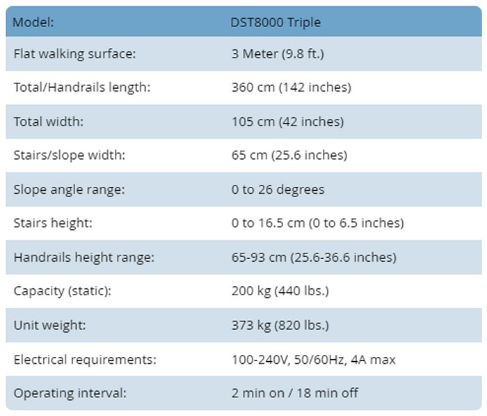 DST8000 Triple combines three devices in one, including an adjustable staircase for walking up and down steps, a walking surface inclined at different angles, and a full horizontal parallel bars. DST8000 Triple combines three devices in one, including an adjustable staircase for walking up and down steps, a walking surface Inclined at different angles, and a full horizontal parallel bars. The unit’s sleek versatile design simulates everyday urban terrain – enabling patients to train and practice different slopes, stairs and gaits without changing equipment.