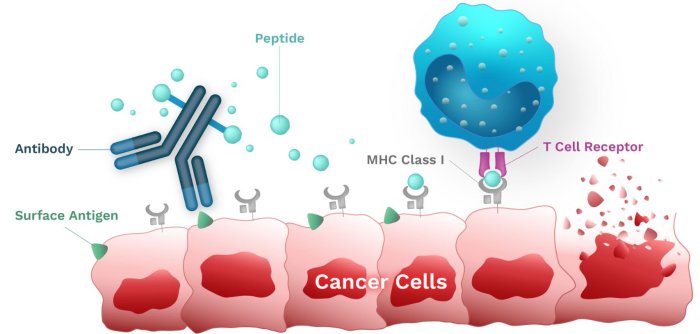 In some cases, cancer cells may not express an ideal T cell target on their own. It is possible to bring a well-recognized target to the cancer cells using monoclonal antibodies or liposomes. This allows the Tevogen’s target specific cytotoxic T cells to then attack the cancer cells.