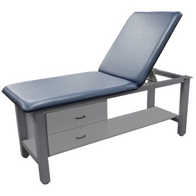Custom build your aluminum treatment table to meet your specific needs. The dependable Aluma Elite Basic Treatment Table is the perfect centerpiece for each therapy or rehab facility. The extraordinary load capacity of 650lbs. and the welded aluminum frame make the Aluma Elite Basic Treatment Table the perfect table for your office, clinic, gym, or facility. Each table comes standard with welded aluminum frame, H-brace construction, comfortable 2” high density foam cushion, and softly rounded corners. Make it your own by adding length or width, laminate shelves or a cabinet that can be mounted on either end. Patient-friendly customizations include a nose hole and 70° manual lift back.