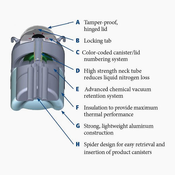 Small Capacity (SC) and Extra Capacity (XC) Series Aluminum Dewars Provide Long Term Secure Storage with Low Liquid Nitrogen Consumption in a Convenient Lightweight Package. Bend Don`t Break™ (Patent Pending) – a redesigned top head that deforms to absorb G-force damage to the neck area and minimize the chances of product loss through mishandling and during transportation. Semen Safe™ – a stronger composite neck that is 20% stronger than the previous design and specifically intended to minimize damage and prevent semen loss through mishandling and during transportation.