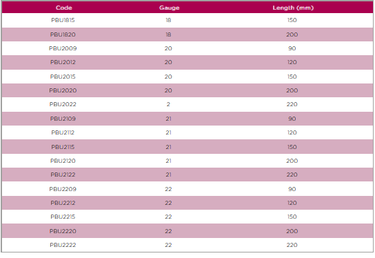 The device can also be provided with a luer extension of 30 cm using reference code: PBUPxxyy.