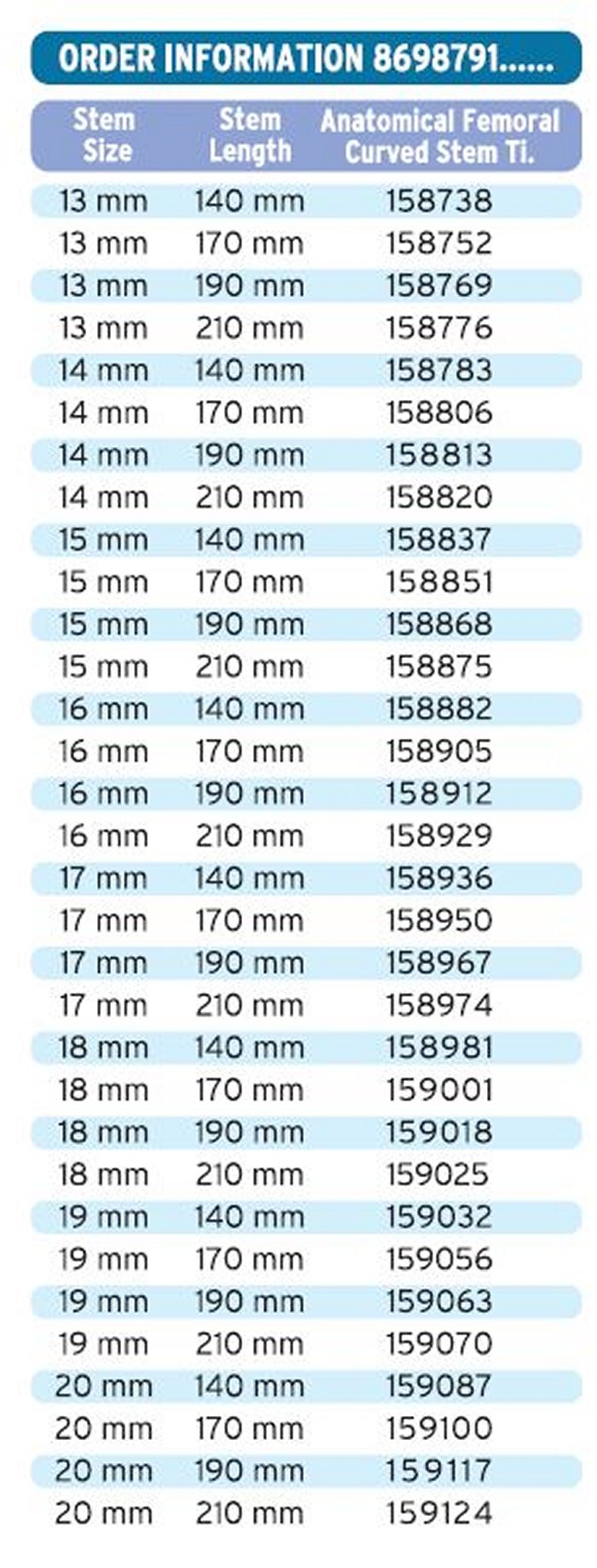Material Composition : Manufactured from Titanium Ti6AI4V according to ASTM F.136 - ISO 5832/3.