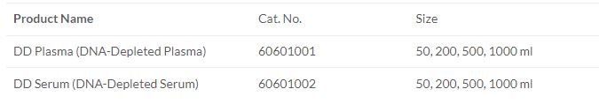 - Highest quality DNA-depleted human plasma
