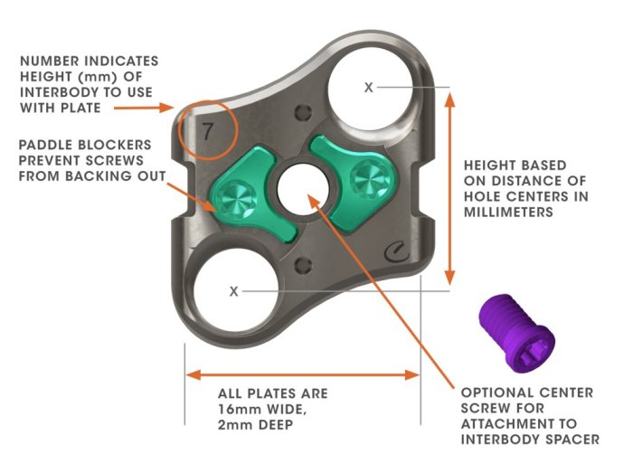 - Center Screw connects ALTIVO™ to Camber Spine interbody spacer