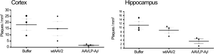 2A Pharma’s anti-amyloid-beta vaccine candidate, AAVLP-Amyloid-β, has in laboratory tests with transgenic mice over-expressing amyloid-beta mutant protein been shown to eliminate amyloid-beta soluble protein, a clear plaque from the cortex and significantly reduce plaque from the hippocampus. It is our hope that the drug candidate can be developed into a treatment for early-stage Alzheimer’s disease.