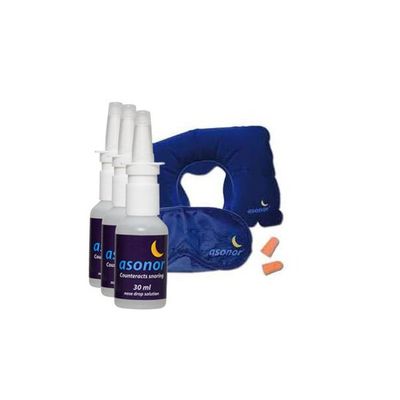 3 bottles of Asonor anti snoring solution, covering 3 month peaceful night’s sleep for you and your partner. Plus a travel kit. Award winning and Clinically proven Asonor anti snoring solution is ranked as one of the world’s best anti-snoring treatments. Asonor effectively remove the cause of snoring and it is a simple yet effective treatment, which relives you and your partner from the inconveniences of snoring.