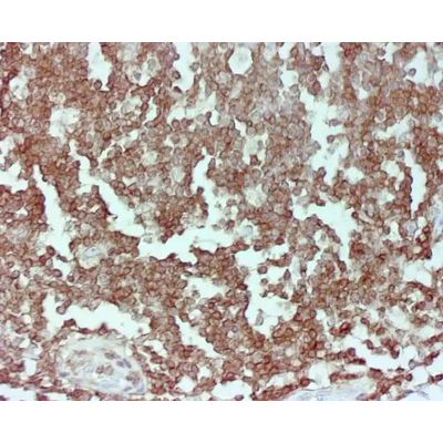 Cluster of Differentiation 45 (CD45) pHRP Anti-Human Staining Kit immunohistochemistry (IHC) reagent is for use on frozen and formalin-fixed-paraffin-embedded tissues. The CD45 antigen is a protein which was originally called Leukocyte Common Antigen and recognizes an antigen found on lymphoid cells. Anti-CD45 antibody is a useful tool for identifying tumor cells of lymphoid origin. It is routinely used to aid the differential diagnosis of undifferentiated neoplasms, whenever malignant lymphoma is suspected by morphologic clinical data. CD45 is a Type I trans-membrane protein which is in various forms present on all differentiated hematopoietic cells except erythrocytes and assists in the activation of those cells (a form of co-stimulation). It is expressed in Lymphomas, B-cell Chronic Lymphocytic Leukemia, Hairy Cell Leukemia, and Acute Non-lymphocytic Leukemia.