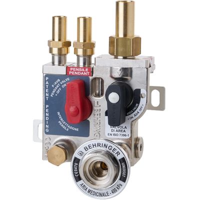 The P/AVB area valve is developed to meet the safety requirements of Standard 7396-1 and at the same time guarantee notable savings in terms of the time required for installation and building work, to achieve this we managed to combine the pendant shut-off valve with the area valve; the area valve can be fitted with a valve status sensor. The valve also has an emergency inlet and a block for physical disconnection. An optional pressure gauge, or a pressure gauge with electrical contacts can be installed.