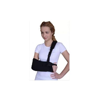 Stabilizes the arm in the desired position to immobilize the arm-shoulder after dislocations and in post-operative resting positions. Made of gabardine cloth. Comes with an adjustable neck-shoulder and a waist strap.