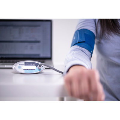 The accuracy is validated invasively for oscillometric measurement and determination of fundamental central hemodynamic parameters (SBPao, AIXao, PWV). What is unique to the Arteriograph are the real-time transmission and visualisation of the detected pressure curves by the Arteriograph software.