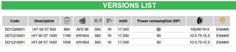 Description: HIT 56 ST 600 660 APS 96 560 16 17.000. Power consumption (HP): 60.