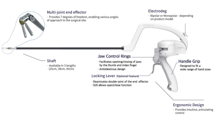 ArtiSential`s double-jointed end-effector enables precise access to complex, difficult- to-reach surgical spaces.
