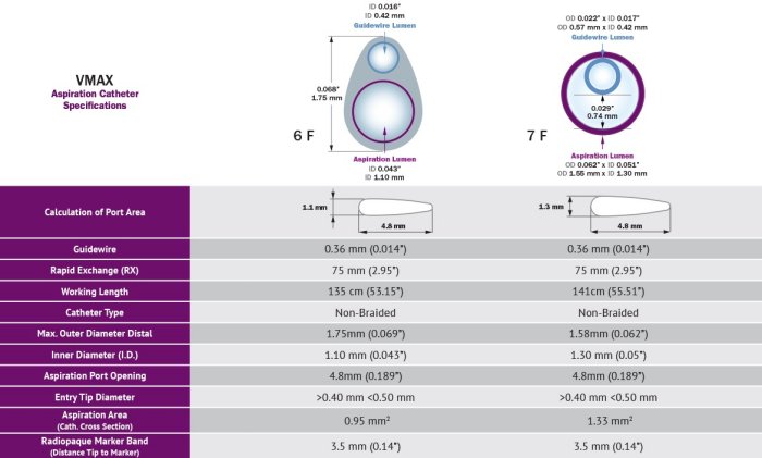 The VMAX Aspiration Catheter is designed to provide an efficient and effective solution for thrombus removal. Offering excellent trackability, pushability, and aspiration volume. The VMAX is a rapid exchange type catheter used for the removal of thrombus and debris in the coronary or peripheral arteries via percutaneous suction.