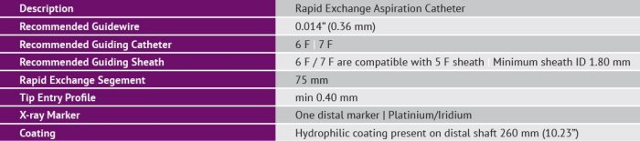 - Short Tip Design for deliverability and increased safety during aspiration procedure