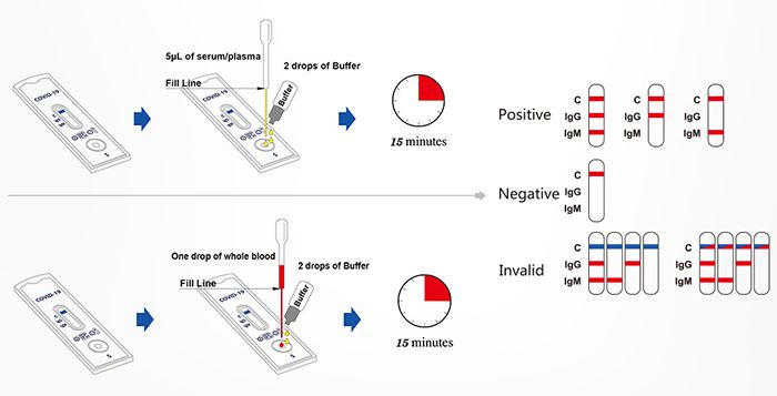 Qualitative detection and differentiation of IgM and IgG antibodies to SARS-CoV-2 in human venous whole blood (sodium EDTA), serum, or plasma (sodium EDTA). Intended for use as an aid in identifying individuals with an adaptive immune response to SARS-CoV-2, indicating recent or prior infection. Emergency use of this test is limited to authorized laboratories.