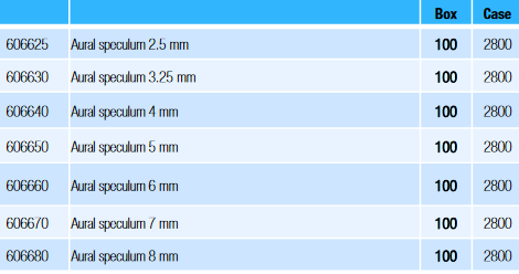 The primary and intentional usage is (or examination procedures of the outer ear when using a microscope. Size chosen depending on the patient`s ear canal. Fits SSIP`s Siegle pneumatic examination glass (Pg 10). Available in seven different sizes: 2.5,3.25,4.0,5.0,6.0,7.0, and 8.0 mm.