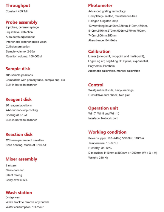 - 90 positions for reagent and 105 postions for sample to assure more test items in batch tests, increase work efficiency