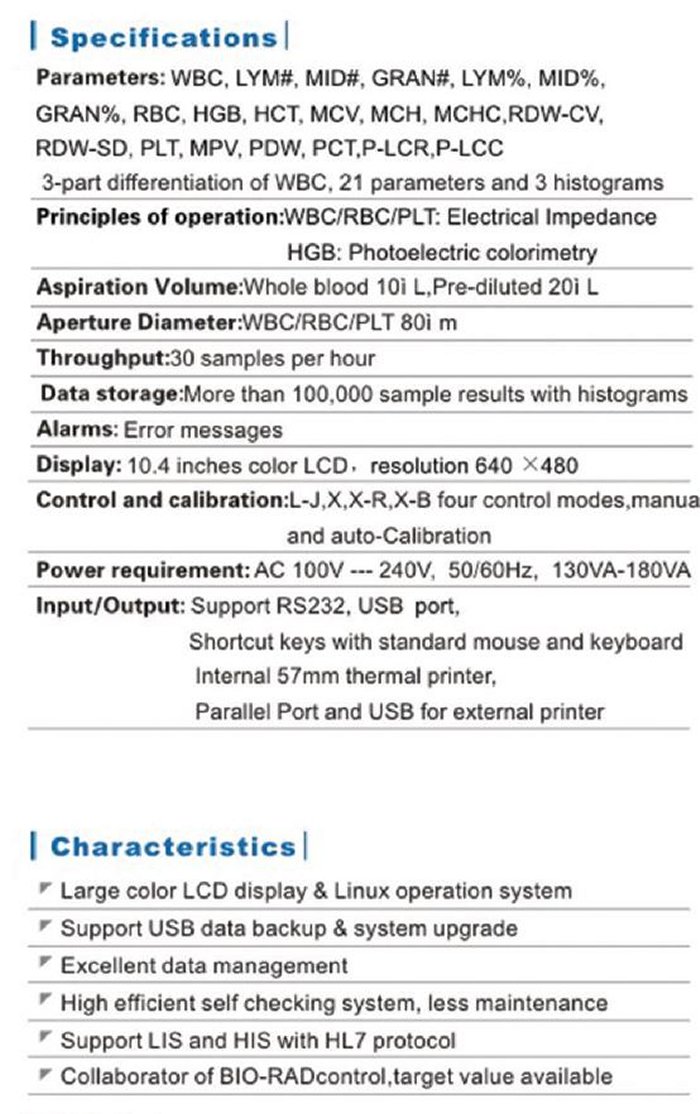 UBM - Model FX19ET -Auto Hematology Analyzer