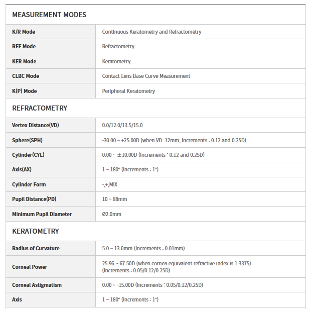 PRK-8000 provides an extensive dioptric measurement range [-30D to +25D] compared to our previous model, and the radius of curvature for keratometry is 5.0mm to 13.0mm. Easy alignment and friendly operation allows you to measure the refraction and keratometry at a time and check the results immediately