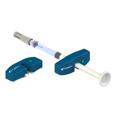 The Credence Connect™ Auto-Sensing Injection System incorporates automatic real-time monitoring of critical injection data into a reusable ergonomic finger grip. The comfortable grip enhances the usability of any syringe while measuring and transmitting injection information in real time.